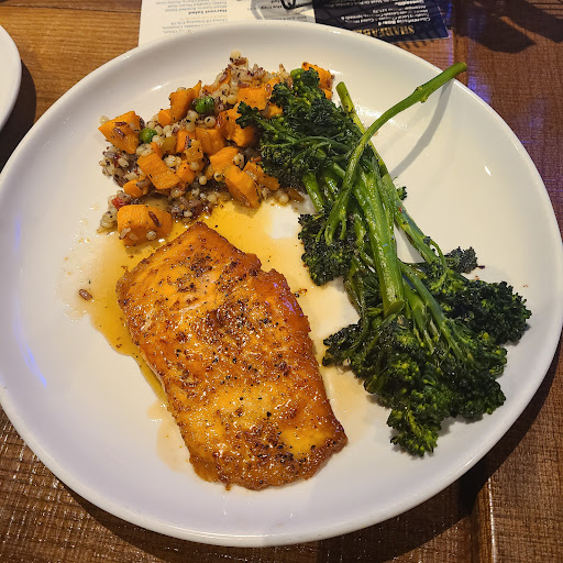 The salmon itself was pretty good because of the sauce, which provided majority of the flavor on top of salt and pepper. There were some vegetable bits included, such as broccolini, carrots, and what seemed like Palestinian couscous. I liked the dish overall, even though I would have enjoyed it more if there were more pieces of vegetables included.