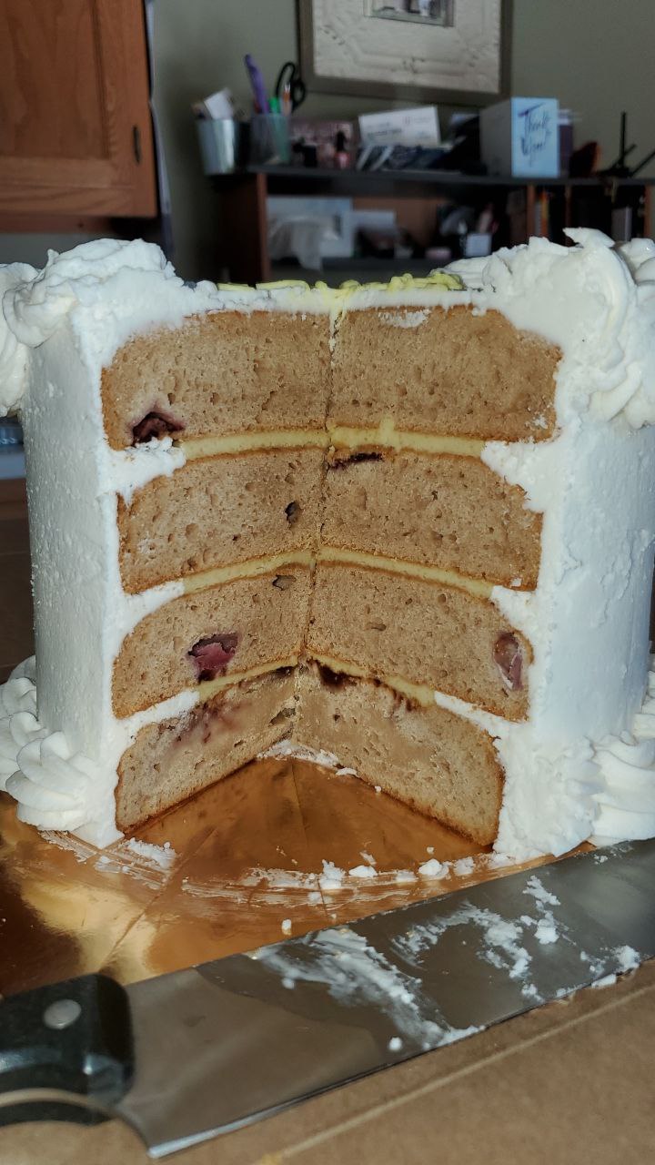 Also ordered a circular 3-layer strawberries&cream vanilla cake with mango jam and buttercream frosting... The baker said she accidentally made the cake diameter too small so she just gave me an extra layer to make up for it (which was fine by me). There wasn't much "strawberries & cream" flavor - why I only gave 4 stars - but the cake still tasted really good. The amount of frosting to cake was well proportioned also. I've had other cakes where the amount of frosting was just so overwhelming but that wasn't the case here.