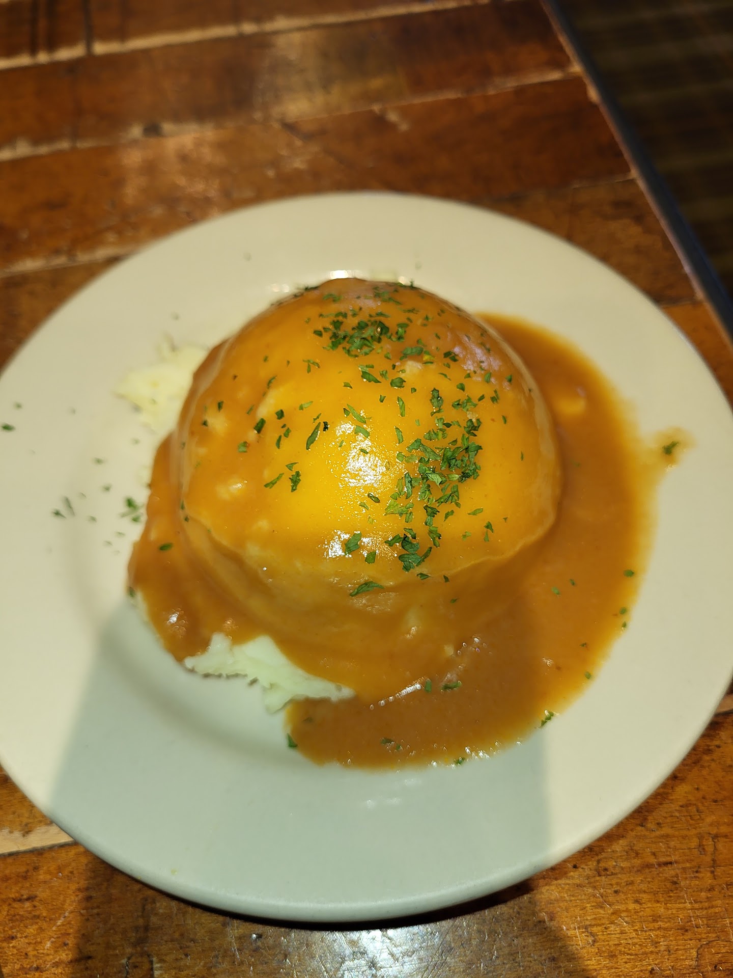 10/30/22 A nice return. The Sunday special was chicken and ribs. My wife and I split the special and got a salad and mashed potatoes with gravy. It was very good. I said maybe we'll have room for dessert and we did? We had the caramel...
