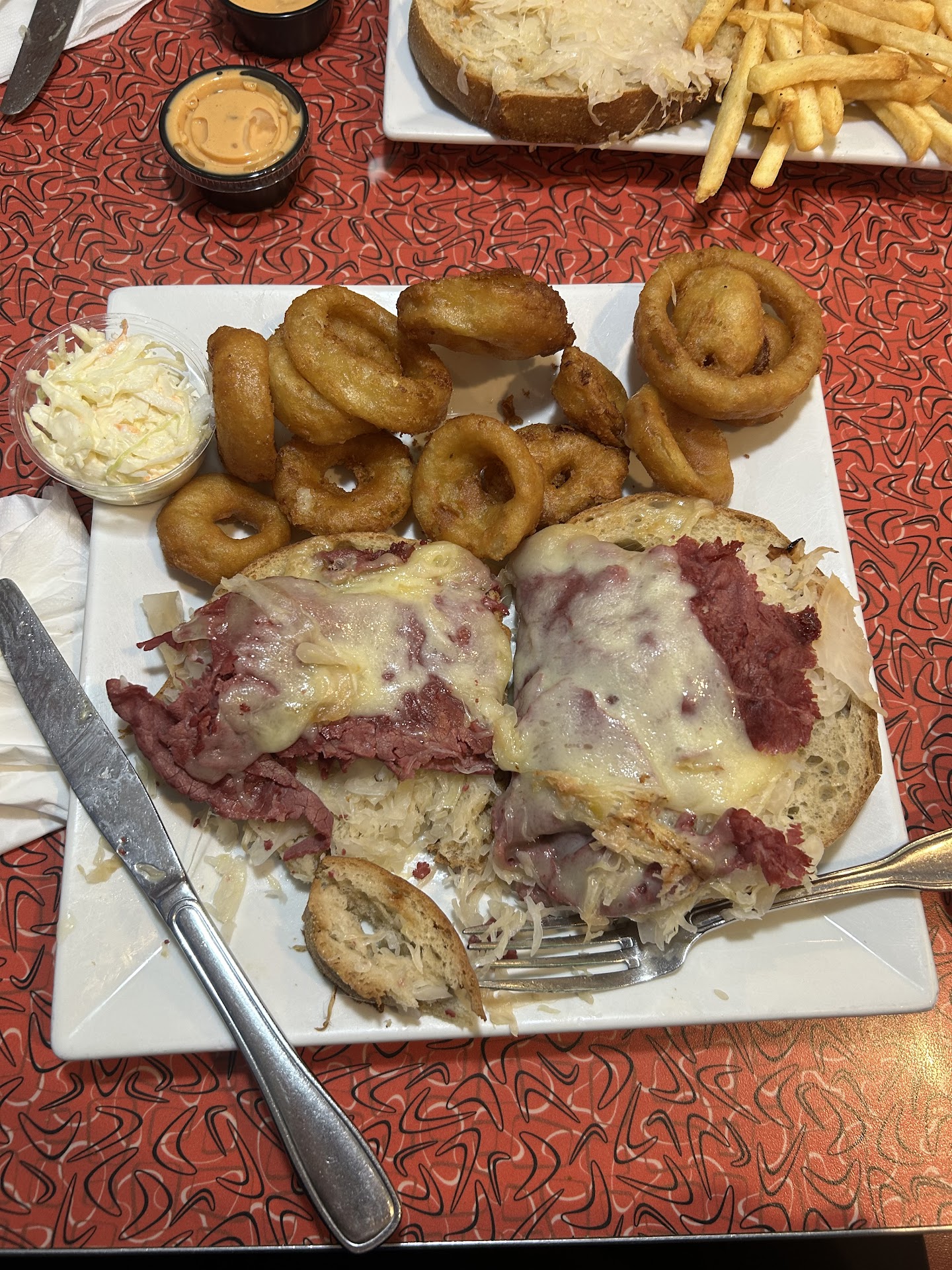 Read moreApproaching from the outside this diner has done everything right. There's an old gas pump hooked up to an antique car. The building itself is a perfect retro diner. But getting up to the door there was a whole sheet page explaining that they only allowed licensed Service Dogs inside. This caused me to wonder if they would have a problem with my giant Service Dog but I was meeting people there, so in I went. We needed a table for 8. There was a brief discussion amongst the hostess and the server. It turns out, the place is really set up only for parties of 4. Any more and they start moving tables. So, they cheerfully and quickly moved a freestanding table to a booth and confirmed with us that the placement was acceptable. The menu was large. As in, the menu played on the table was taller than half the table. So with people on both sides of the table, it was like dueling menus. But we were all family, in a good mood and having a great time. So we laughed off spilling over the water glass with the menu. Our server was wonderful! He was so helpful, cheerful and continued to offer further suggestions for us. The menu was so large because it was also extensive! From all day breakfast to sandwiches, cold and hot, to dinners and sides, shakes, malts and desserts. The food was good. I would say it was better because specials were ordered by a car's name. The atmosphere and the service were truly unique even amongst those that strive to be retro diners. The missing star is for not appearing too friendly from the outside and a little room for creative improvement...