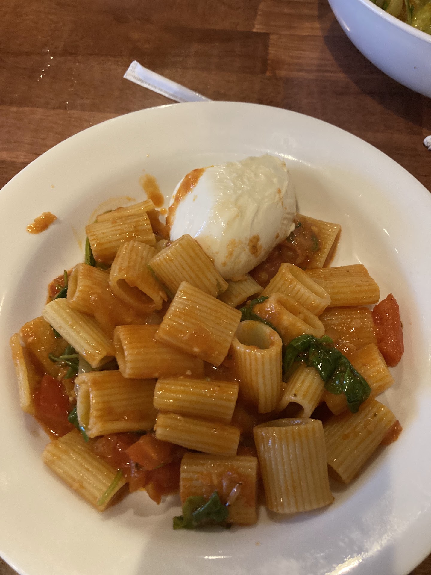 My wife had shrimp fagoli over orecchiette. Now, they don't mention that there are onions in the sauce. It was delicious but she is not a fan of pieces of onion.