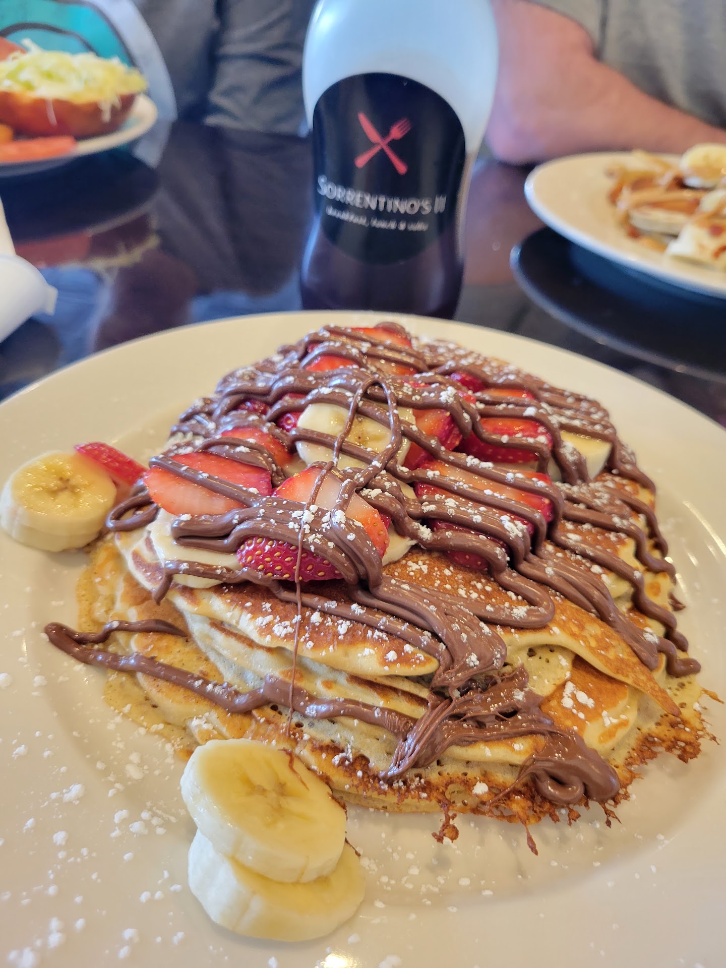 Plenty on site parking. This cozy little corner restaurant is a place I will be going back to. Went at noon on a Sunday with 5 people. Place was busy. Young ladies at thr front were very welcoming. I explained we were waiting on 2 people and she said she would get a table together within 10-15 minutes. She had one in 10, and let 3 of us sit while we waited for the other 2. Waitresses are so so nice and attentive, not over the top. Always smiling. We ordered the corned beef hash and eggs--my husband loved it, said hashbriwns and corned beef were awesome-hes picky, I had the Nutella pancakes with strawberries and bananas--get both, I didn't regret it. Thr pancakes were 3 stack, decent size, a little fluffy, just enough fruit and Nutella with a side of syrup--rhey were really good ๐, a friend had rhe elvis and the other 2 had burgers--all were satisfied with their selections. They take cash or credit. Prices are reasonable. The place is cute inside, tables spaced out well. They also had some hot cocoa bombs for sale, my husband bought a few--we're trying those later. Overall a really nice restaurant with really great staff and...