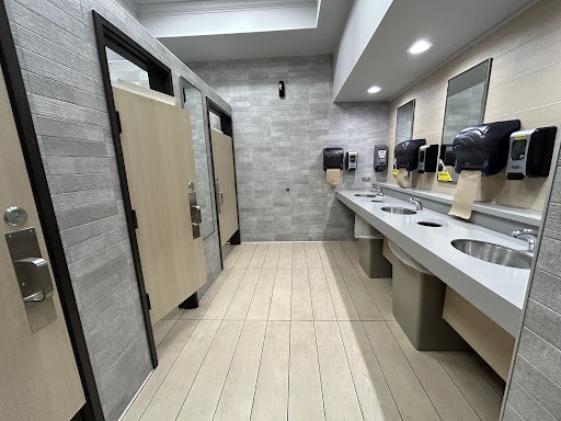 Bathroom clean. Lots of parking available for pit stop patrons and weary travelers...