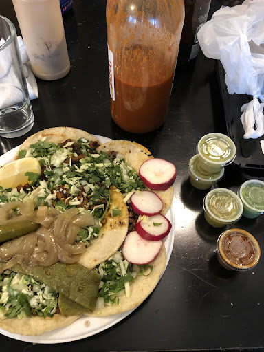 Stopped in this food trailor with a walk in shed add on and was happy we did. Authentic Mexican with homemade corn tortillas. Even down to the grilled cactus leaves...yumm. Street tacos is what we had. I had chicken (polo), she had beef (carne asada). Came fully loaded (meet, cilantro, onion) with radish slices and a cactus/onion mix on the side. She had them ad sour cream and they both were good taisting, not greesy and good meat (no grisly spots). Friendly staff and normal speed to make to order. We were happy. Recommended.