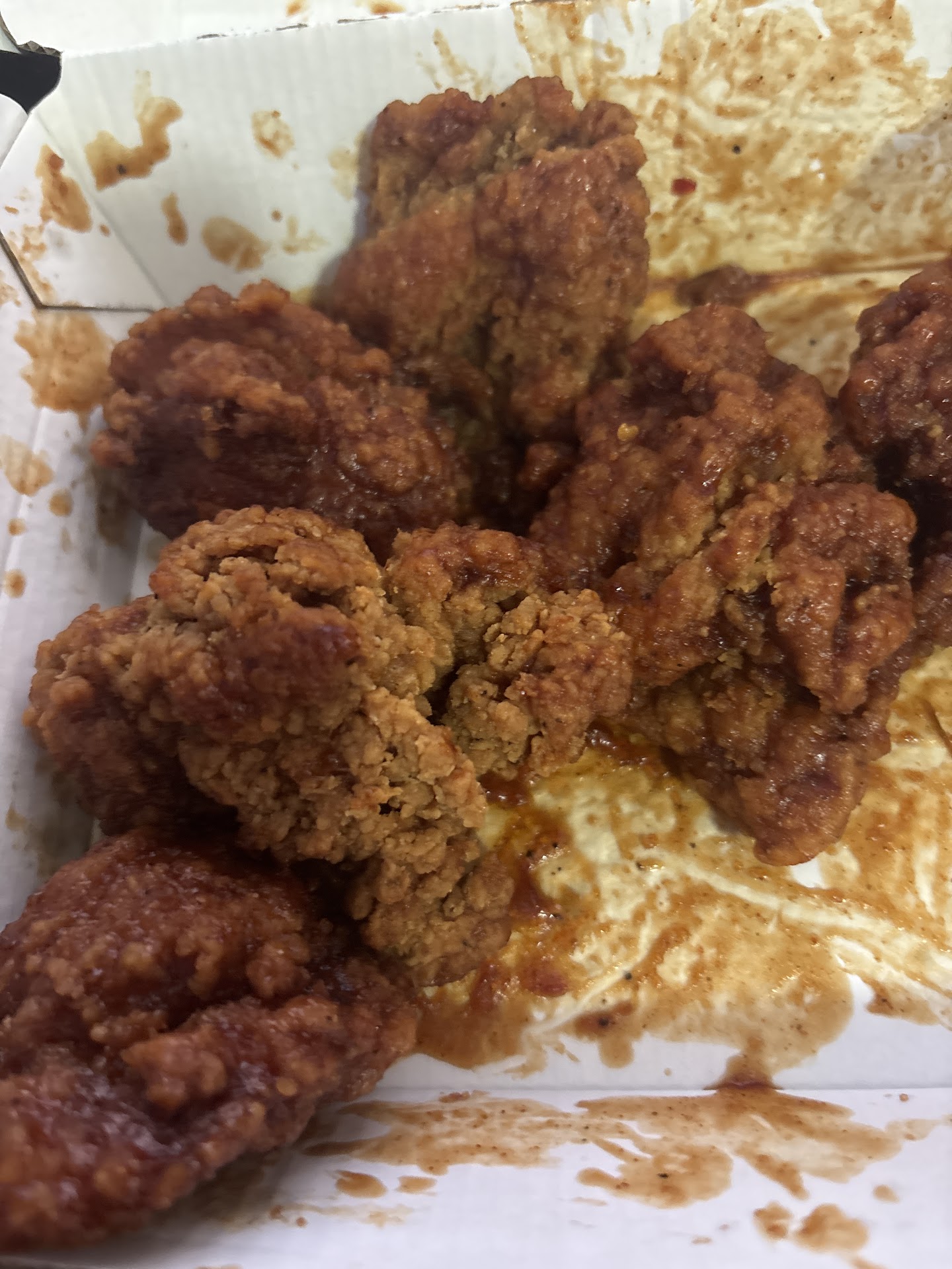 Was in town for work two weeks ago and ordered a 30 piece wing for carry out. Ordered online and got to the restaurant about 5 minutes after the order was supposed to be ready. Order wasn't ready so waited another 5 minutes or so for the order to be completed. No biggie..... I realize the order time frame is an estimate. Got back to my hotel and the first box had 14 wings and the second box had 15 wings. Ordered ranch dressing and didn't get any in my order and zero napkins in the bag..... Again, no biggie..... seemed like a simple accident, wings were good and used a hotel towel for a napkin. Back in town this week and ordered another 30 piece for take out. I specifically asked for napkins this time while at the counter as there were none in the bag again ... I got two napkins after asking this time so I raided the table top drink napkins nearby to get something close to what you might expect for 30 wings. Got back to my hotel.......First box had 13 wings and second had 15 wings. Hey I get it....counting to 15 twice is difficult and in the grand scheme of things... this is a 95% success rate for counting to 15. It's a 100% success rate for error, but I like to look at the silver lining in things. With that said......, this time the wings were not good.....at all. Significantly over cooked (hey that's better than undercooked when it comes to chicken right??), but the sauce I ordered was either not what I ordered or it is going bad. It tasted closer to a bad honey bbq than a medium buffalo. I ate part of the order and pitched the rest. If you're ordering take out from this restaurant make sure your condiments are in the bag, ask for napkins and count your wings before you leave...... or take this review as a decent chance that you'll get your order screwed up too.....unless you like to gamble against a 100% success rate of failure. Won't be frequenting this particular...