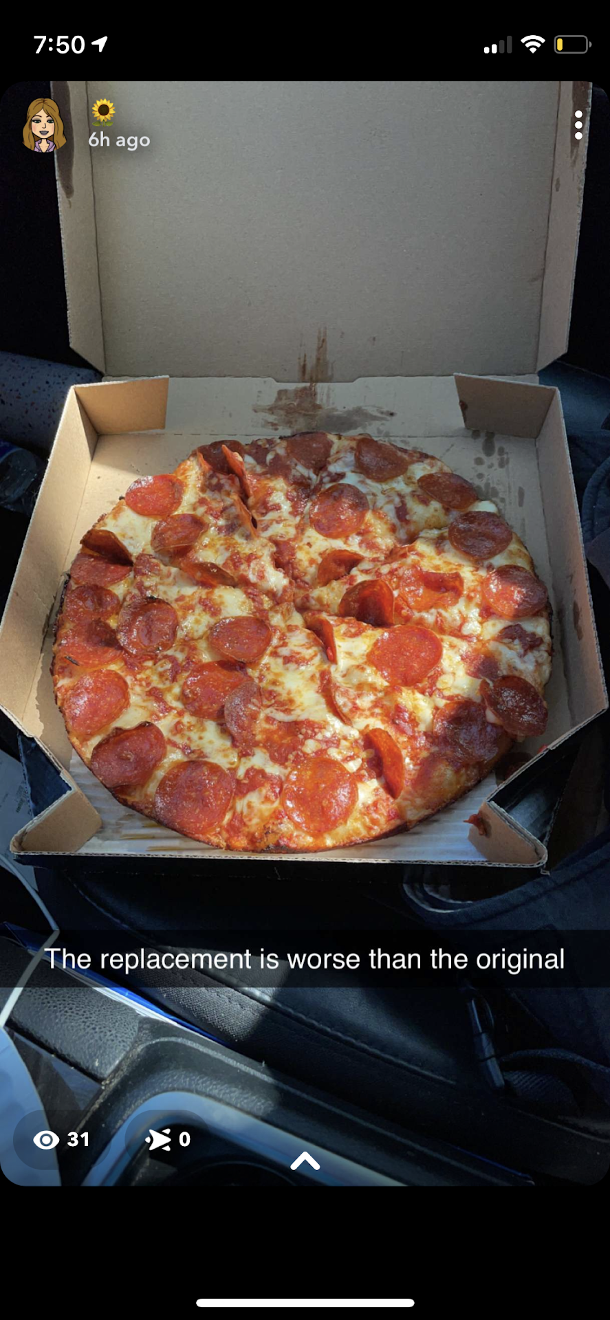 Read moreOrdered at 1:50, followed my tracker, called the store a little over an hour just to maybe get an update on my order ( keep in mind yes it's a little snowy out) guy says our drivers are doing the best we can...cool great, understand that! Now at 2 hours ( 3:50 ) I call again and just said hey, wanna do a refund I've been waiting for 2 hours now and lady on the phone said that's impossible ( not hey let me check your order or let's see what's going on....) I said it said so and so left at 3:30, she said sir that was 10 minutes ago, I said I ordered at 1:50. So then she got my refund started and of course the pizza shows up! I came out and told the guy hey I ended up canceling my order.....didn't say nothing just turned around and...