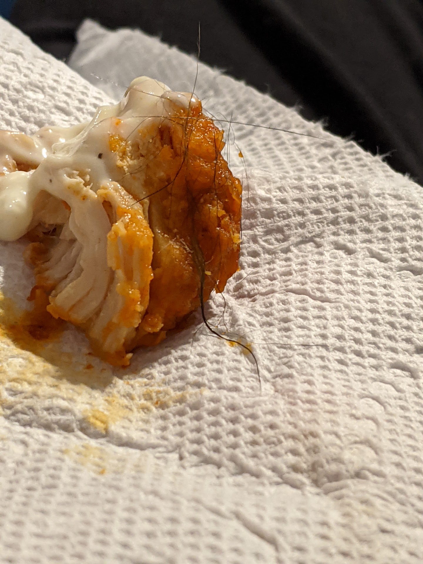 Read moreUnfortunately I have to change my review about roosters. I just had my worst dining experience with them ever that has taken, at least this location, from a 5 to a 0 if I could give it. I ordered takeout which in the past has been perfect for me. Well today, for whatever reason, my food was ready 15 minutes early. I have a half hour drive to get to this location but it's the closest one I'm comfortable going to. So I'm halfway there and I have already gotten a text saying my food is done. When this happens I usually will just eat in the car to remedy the issue but I got no silverware, which may be a product of covid shortages, so I couldn't even do that. So I had to drive the food all the way home after it's already been sitting so once I get it home it's beyond cold and soggy. Then I discovered that my girlfriend ordered an apple juice that was not given to us. I thought that was the end of this bad experience. Stuff happens that wasn't a crazy big deal although it upset my girlfriend to not get her drink. Then I was eating my wings and dipped one in bluecheese. Luckily I looked at it before I went to bite. It was covered in hair. I'm not talking just one. I'm talking enough that it looked like someone cut their hair into the food. I would avoid this location, at least, at all costs. That much hair couldn't have been an accident. I will be posting a picture of the wing with the hair on it for perspective. I will not eat from roosters for a long time now. They need to seriously consider who they are hiring to work in...
