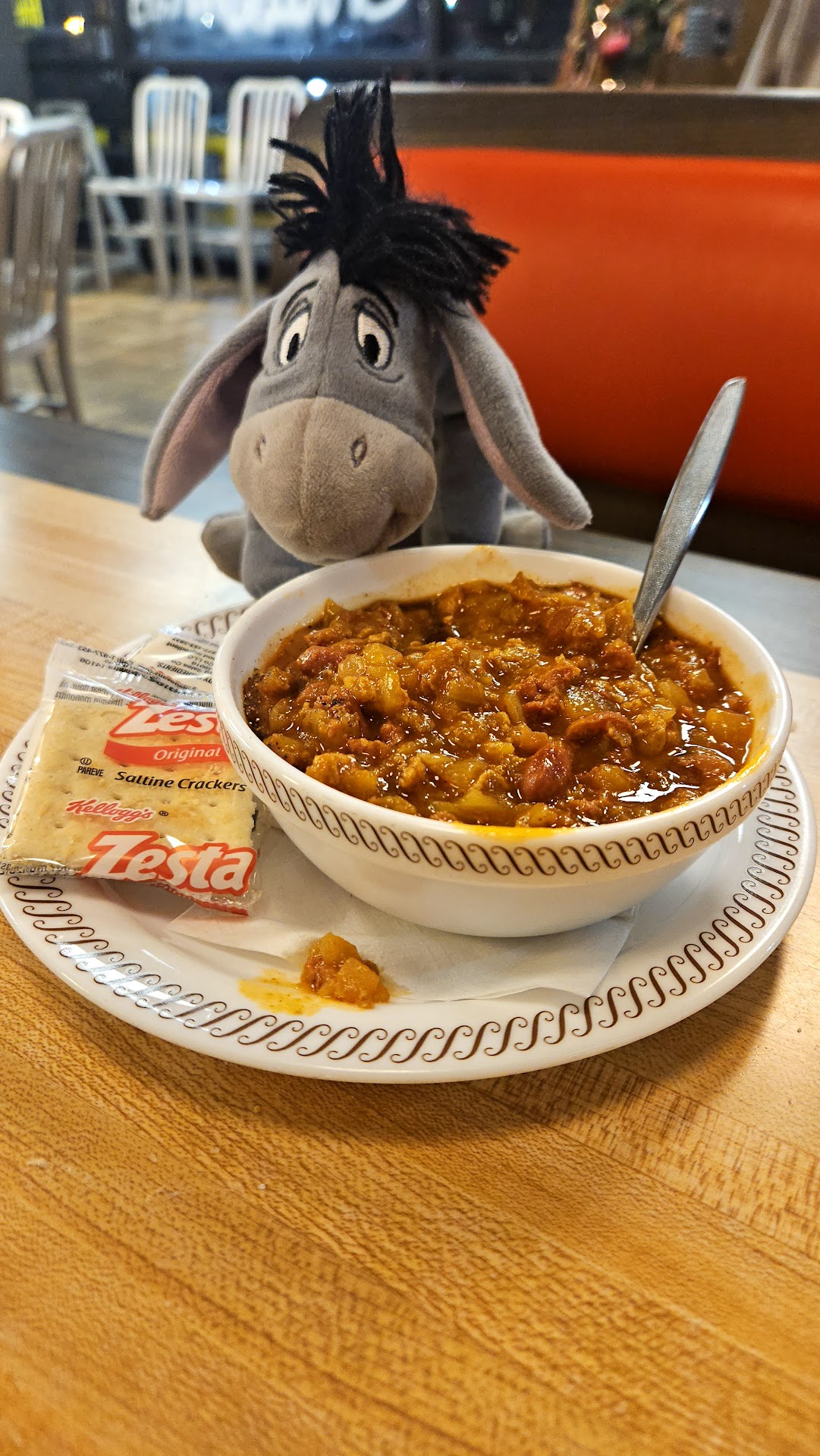 It is Waffle House so this is my limited experience in Florida, Tennessee, and Ohio (this one)⦠A friendly staff takes your order, and I had to ask them to turn down the music, with plenty of speaker denying a quiet corner. I put in my Fitness Earbuds, to help with the clanging of plates and cooking tools, reminding me of a Beni Hana years ago where a āchefā thinks banging metal instruments is part of your entertainment. I got a good meal with great hash browns( I like crispy), yet after cooking for us, the cook went out in front of the door and smoked up that area (smelly when entering) before placing his butt in the container the store places 30 feet away! I figured out why the people were yelling, and the music was so loud: The overhead fan in the middle of the restaurant is so loud the employees cannot hear each other! So they are yelling to be heard over the fan, and over the music they turned up. Then some people seemed to busy cleaning so more noise, especially when a big metal part fell on the floor.. ugh Nice people, not their fault, I think the corporation could improve their environment by using a couple engineers or an architect who knew what he was doing. I ate at the counter in Daytona Beach and spoke with staff and patrons, and had no problem.. I went back! Not in this Huber Heights location though.. I donāt remember Tennessee having this...