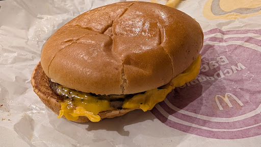 The first window I received my receipt and then pulled up to the second window where my food was ready. Then drove home, decided not to eat it in the car. The cheeseburger was still hot. I don't care what anybody says, you really can't get a bad hamburger at McDonald's. They know what they are doing.