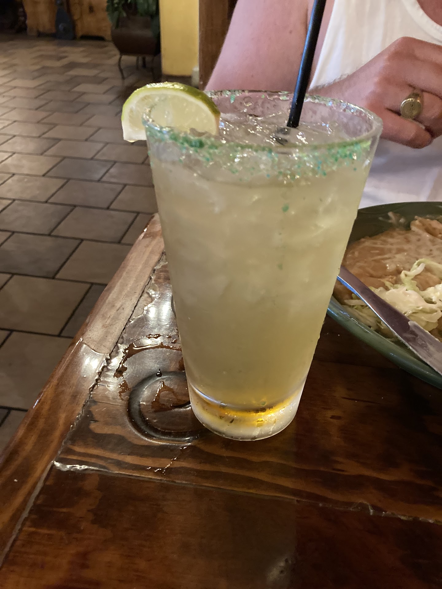 You are not allowed to order a drink from the bar while you are waiting for a table. This I couldn't wrap my head around. I get that moving the ticket might be an issue, but if that's too difficult for the staff just make me close out my bar tab right away. We waited for about 40 minutes after being told 20. It would have been a much better wait sipping on a delicious margarita. I think every other Mexican restaurant I've been to with a wait I've had a margaritas in the lobby, to the point where I look forward to the wait for a table because then I can chat and sip without feeling rushed. Imagine my surprise getting told no when trying to order at the bar. Weird. I think the front of house manager should rethink this policy.