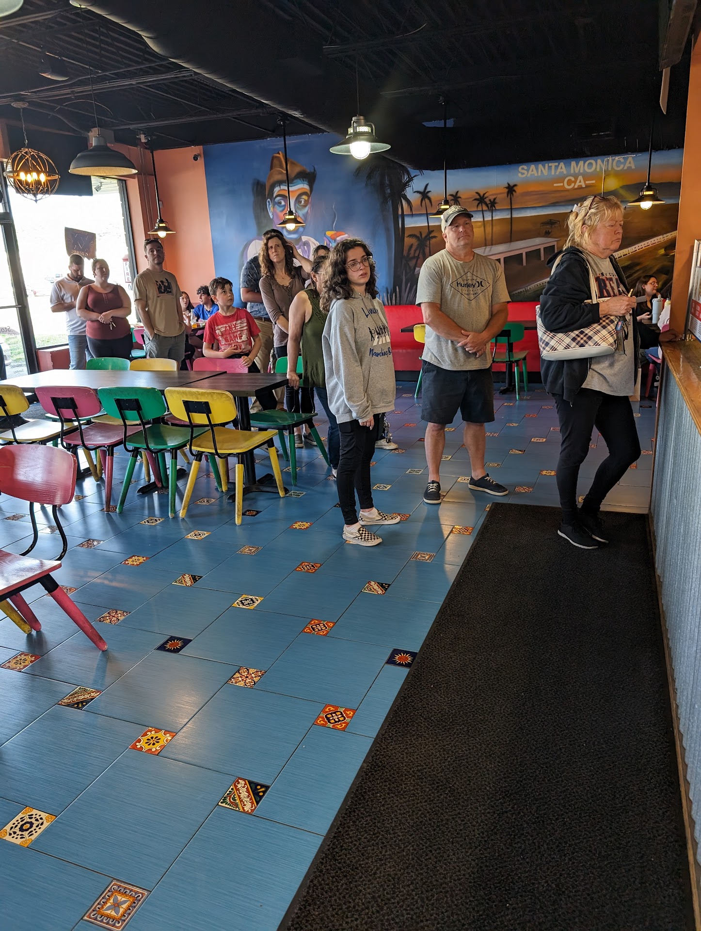 The mariachi music was turned up to 11, it was physically painful to stand under the speaker just inside the doorway.