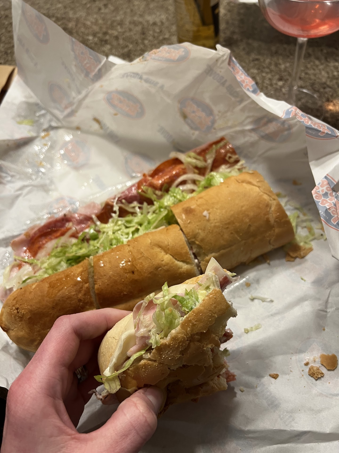 Read moreThis was my first time here, only my second time for Jersey Mike's overall (neither location is close to home), we had a party of 4 and we all really enjoyed our sandwiches, enough so that we needed to thank the crew and compliment them before leaving. The only thing we thought was weird was the ordering process. Because of the way it's set up we thought we'd have to go to the open portion where there is no plexiglass to order, turned out that we were on the wrong end and had to relocate to the other end where we had to order by talking to someone on the other side of the plexiglass. The plexiglass aside, It wasn't too bothersome, I guess that's just the Jersey Mike's way as you get to see your sandwich being made and can instruct them on exactly how you'd like it done. The buns were fresh and soft and for all of us that's a game changer, it's what makes a sandwich a good sandwich. All of the other ingredients were equally fresh. They have three different size sandwiches you can order, I got the regular which was $9 and was plenty big for me. They had ample seating to eat in as well. The only problem I have with them is that they aren't located...