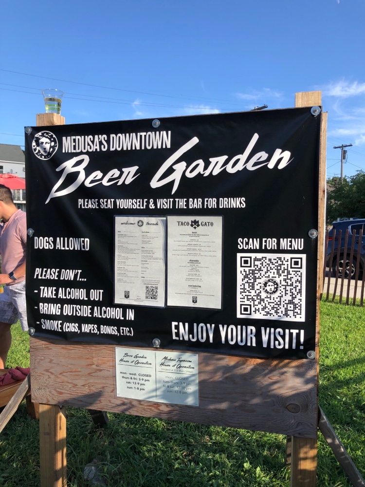 Read moreKudos to Medusa for creatively adapting to Covid restrictions, by collaborating with Taco Gato. The food is fantastic. This is NOT Taco Bell. Serving sizes & prices are small, but perfect as a bite to accompany your beer. It would take multiple tacos & an order of chips to make a "meal". At $4 ea + beer quickly gets pricey, but are worthy of the expense. Judging by the number of people picking up takeout I'm not the only one that thinks so. Just read that they have opened a new indoor Covid compliant space in the Broad St. Mill, which I'm looking forward to visiting. I assume this replaces the beer garden...
