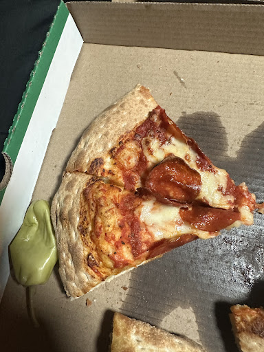 Great pizza. It came fast, apparently delivered through Doordash. The driver was very friendly. The pizza was still hot.