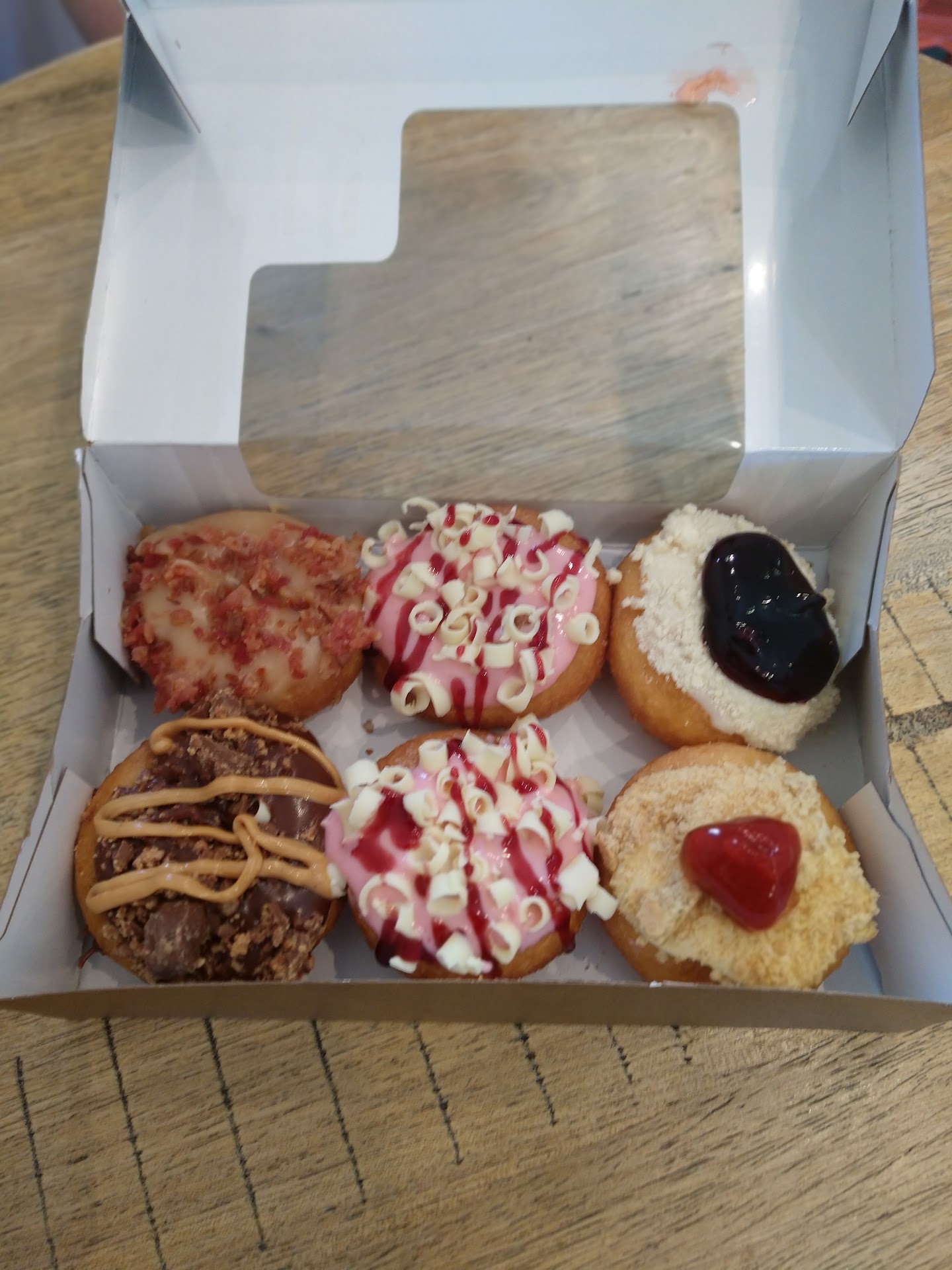 Decent donuts. Unfriendly staff. Overpriced. Adds surcharge for credit card sales and then asks for a tip on top of it. Too bad. Nothing remarkable here folks except perhaps the interior. I’d strongly suggest to greet people with a smile and a good morning when they walk in. At least then people can walk away with the experience of great service with their overpriced small donuts. Also important to note these are all CAKE donuts.