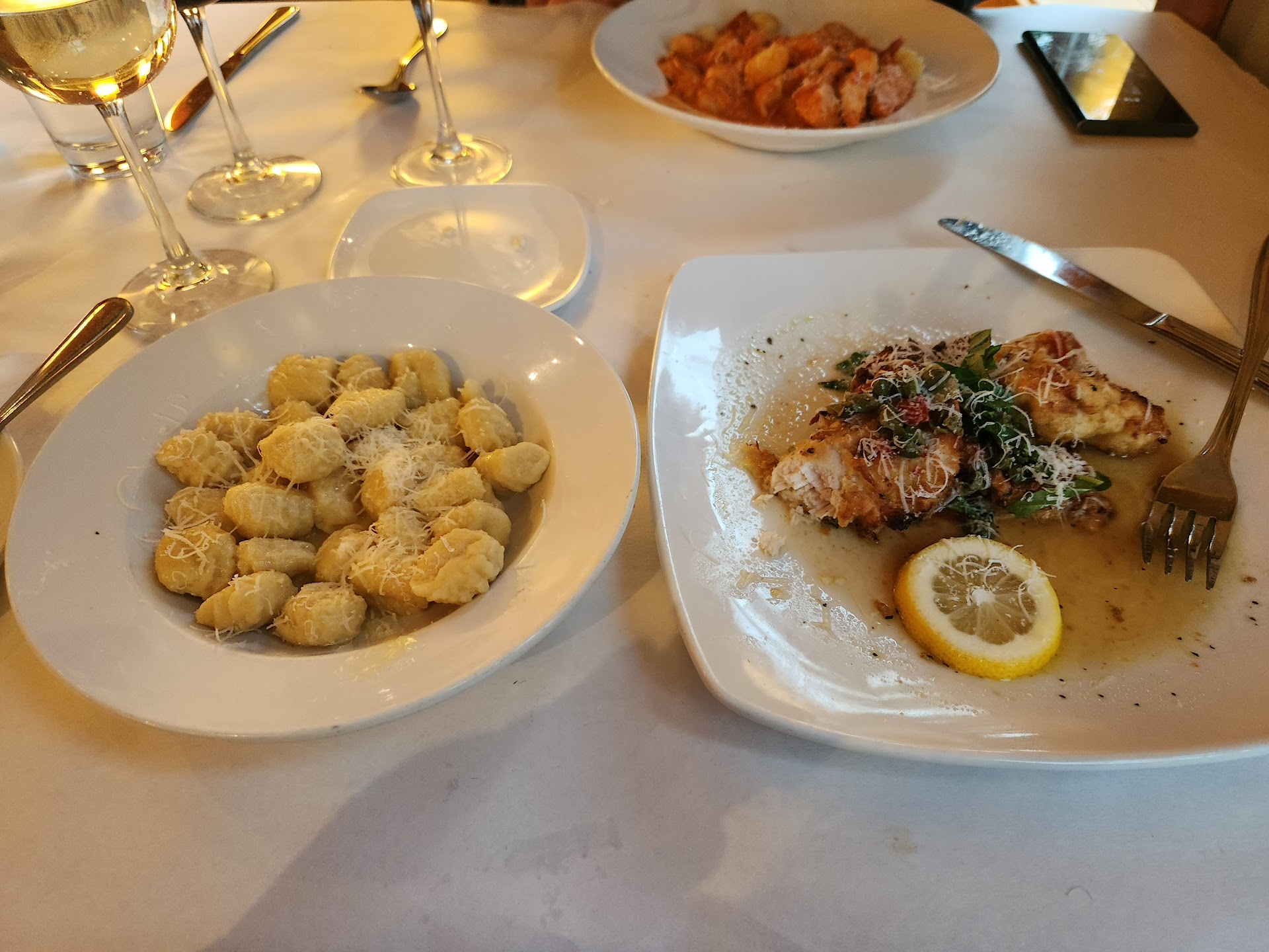 I stopped for lunch at D'Agnese's Tomato Grill, an Italian restaurant, on First Street in Hudson, Ohio. The restaurant is located on the west side of First Street just west of Darrow Road (aka Main Street). There is limited free on-street parking on First Street. However, there is a free two level public parking garage located immediately behind the stores on the east side of First Street. I parked on the upper level. There are stairs on either end down to street level. I used the public elevator in the middle of the east side of the upper level - located in the block of stores on the west side of First Street - to get down to Street level. The Tomato Grill is a white table cloth with cloth napkins restaurant where you can make reservations on OpenTable. The quality of the food and service is outstanding at a reasonable price point for fine dining. The lunch crowd is dressed casually. A host/hostess greets you and sees you to your table. My waiter, Christopher, is friendly and knowledgeable about the menu. He provided freshly grated Parmigiano cheese and crushed black pepper to your taste requirements when he serves the meal. He does not hover but frequently checks with you in a timely fashion to ensure you are enjoying your meal or if you need a refill on your beverage. The atmosphere of the restaurant is modern and crisp. The street facing wall consists of large windows allowing plenty of sunlight into the dining area. The food is excellant with a great depth of flavor. The lunch portions are just right. Your appetite is satisfied and you won't go back to work needing a nap - the portions are just right. I truly enjoyed my lunch. I started with a cup of their monthly soup selection, Cheddar Broccoli. YUMMY! The soup came with a bread basket of sliced Italian bread. I had unsweetened ice tea with my meal. My lunch entree, ordered off their regular menu, is the Veal D'Agnese's with a complementary side of your choice of a pasta. I selected Cappellini (aka Angel Hair pasta). The Veal, several pieces, and an Artichoke are lightly breaded with the restaurant's signature Lemon Sauce. I opted to have the Lemon Sauce on my side of Cappellini too. WOW, the entree was delicious. The Lemon Sauce is light and refreshing and not sharp and overpowering. The Artichoke is prepared perfectly with a great depth of flavor to perfectly compliment the Veal. A great tasting lunch! They have a great dessert selection. I passed but will definitely have dessert when I return for dinner with my wife. Almost every table has hand sanitizer available. The staff do not wear face masks in late March 2022. Most patrons, also, did not come in wearing face masks. The staff immediately clear the table after each meal and place a sheet of crisp white paper to cover the white linen table cloth and put down new place settings. The restaurant and the Men's room are kept clean. When you walk in the entrance, there is a bar with seating at the bar and two tables between the bar and the street facing window and a row of two person high top tables across from the bar immediately to your left. To the right of the host/hostess station are many tables for diners. You will enjoy your lunch or dinner at Tomato Grill. A great place to have a date...