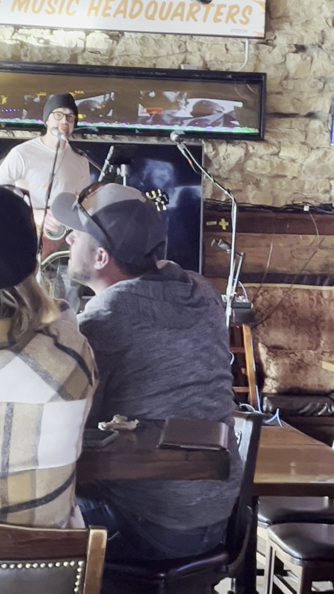 I stopped in late Thursday night for a gig. When I entered near the patio there was a sign reading "Live Music Upstairs". I headed up ... in the elevator right in front of me, rather than the two flights of steps. Which there was a velvet rope across the stairs anyways.... I arrived to an empty... everywhere. So I headed back downstairs... there they are!! I seemed to be the only one there for the gig as the bar was half full of people but they were all hanging out. The acoustics were great. I grabbed a seat right in front, shortly after the bartender came out to me to ask if I needed anything? I did not, but I appreciated him coming out! As the band talked to him throughout the night, turns out he was the owners son. Katelyn was also working the bar, friendly gal. Plenty of tv's throughout. if you're hoping to catch some sports while you hang. The bathrooms are interesting....as they're frosted doors, so you think "so nobody can see in right?" ha. I didn't get there until after 9, which is late for me, so I didn't peruse he drink or food menus....another visit I guess.. The band played right in the front, so there was a big array of windows so you could see the street. As I took pictures.. I'm not sure if it's for looks or you can sit there?! But he front window looks to be a "Sitting(?)" window. There were bench cushions and pillows. would definitely be a fun, cozy seat. As I made my way to the bathroom I had to pass the booths which I noticed all had the much appreciated in the winter, coat hooks on the dividing walls. There is a small parking lot on the south side of the building, right in front of the patio. I was surprised and grateful for the door right there as well, as I assumed I would have to walk around out front. Definitely looking forward to the next FireWater Gospel Choir gig @ Ziggy's...maybe earlier, so I can take advantage of their food and beverage offerings! The stage area was fun with a long frame behind the band that the bottom frame changed color. The bar was fun and lively, covered in Christmas lights! Thanks Ziggy's for showing me what I've been missing by not stopping in all the years I've been next door @ the brewery, looking forward to my next...