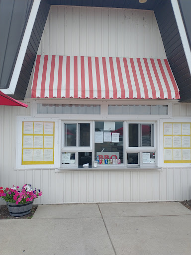 Located at The Hudsonville Lanes Bowling Alley this place reminds me of an Ice Cream shop. You walk up to the Window on the outside of the Alley and order your food and pay. Then 5 to 10 minutes later you get your food. There are a few picnic tables in front of the window and I'm told there are some tables inside, however I didn't see them.