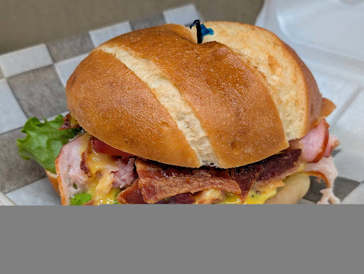 Alpine Club: “Ham, turkey, and bacon with tomato, lettuce, and honey mustard on our best pretzel bun” I made no alterations to my order.