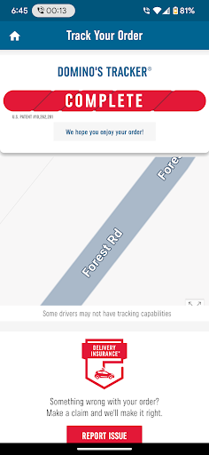 The driver claimed he couldn’t find my house, and while he said he called eight times, when I tried calling him back, I couldn’t reach him on the number he called from, and it took a long time for the store to answer. I called the store and asked on what happened because the app said it was complete. Xavier was the driver. That looked on me that said I'll get in touch with the driver. They didn't tell me but they transfer me to the driver and the driver said that he tried to call but he completed it because he couldn't find the house. You can see on the picture it is complete on Forest road. I do not live on Forest road. Forest road is actually Domino's where Domino's is at.