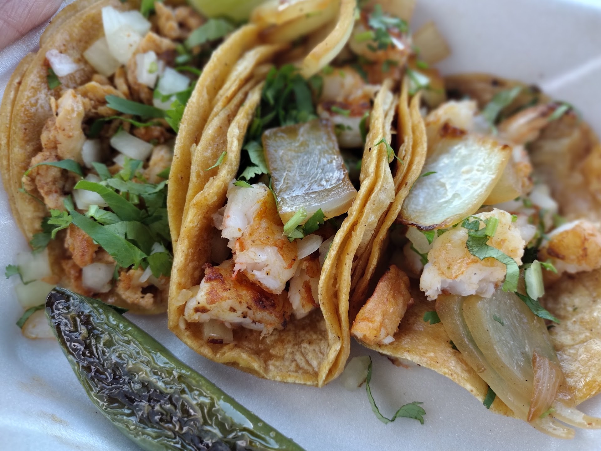 Read moreONE OF THE BEST FOOD TRUCKS I HAVE EVER HAD THE PLEASURE OF SWIPING MY DEBT CARD AT 😂😂😂!!!!!! The food is amazing, priced perfect, and if ANYBODY can tell me what's in the Green sauce I will do g at your wedding lol. I wish they were open on Sundays; that way I can feed my soul with the Word and my stomach with 2 shrimp / 2 chicken tacos with pico and cilantro, hold the...
