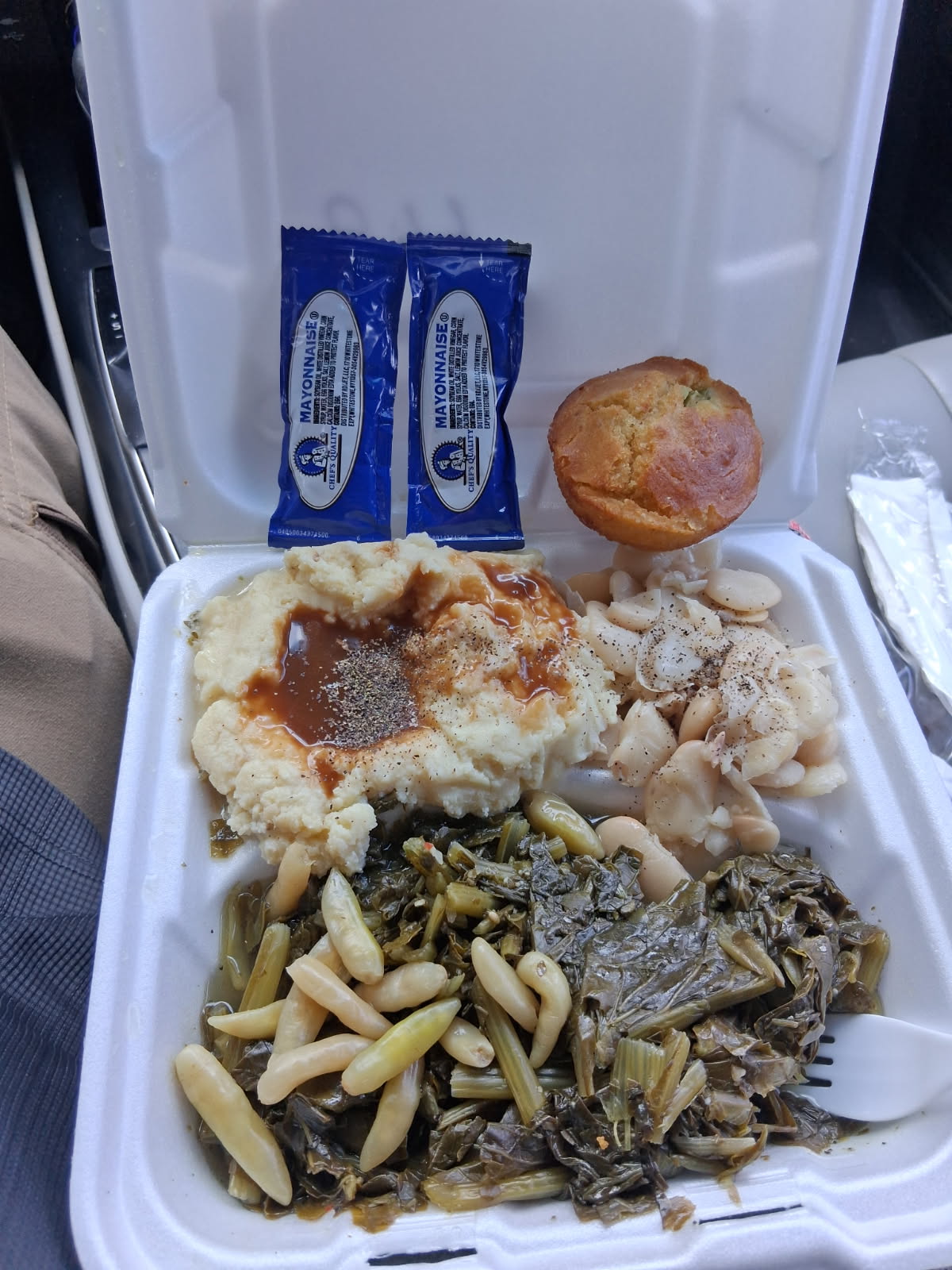 I ate here about a month ago and the food & staff were both outstanding. But today…this is probably the worst food I’ve ever tasted. I got chicken wings, butter beans & greens. The sides weren’t seasoned at all. And I’m not exaggerating. Have you ever tasted unseasoned butter beans? Trust me…you NEVER want to. The chicken was ok. Kinda hard, but seasoned. I plan to drop this entire unfinished plate in the nearest trash can and try to find some tasty food before I become hangry, lol. Ooooh, not to mention, she didn’t even have plastic ware & the spoons she did have were loose in a basket 🙄 The first time there were more ppl. This time it was one lady by herself. And she seemed over it. Wasn’t as friendly as the staff during my first visit. This may have been the reason why the food wasn’t up to...