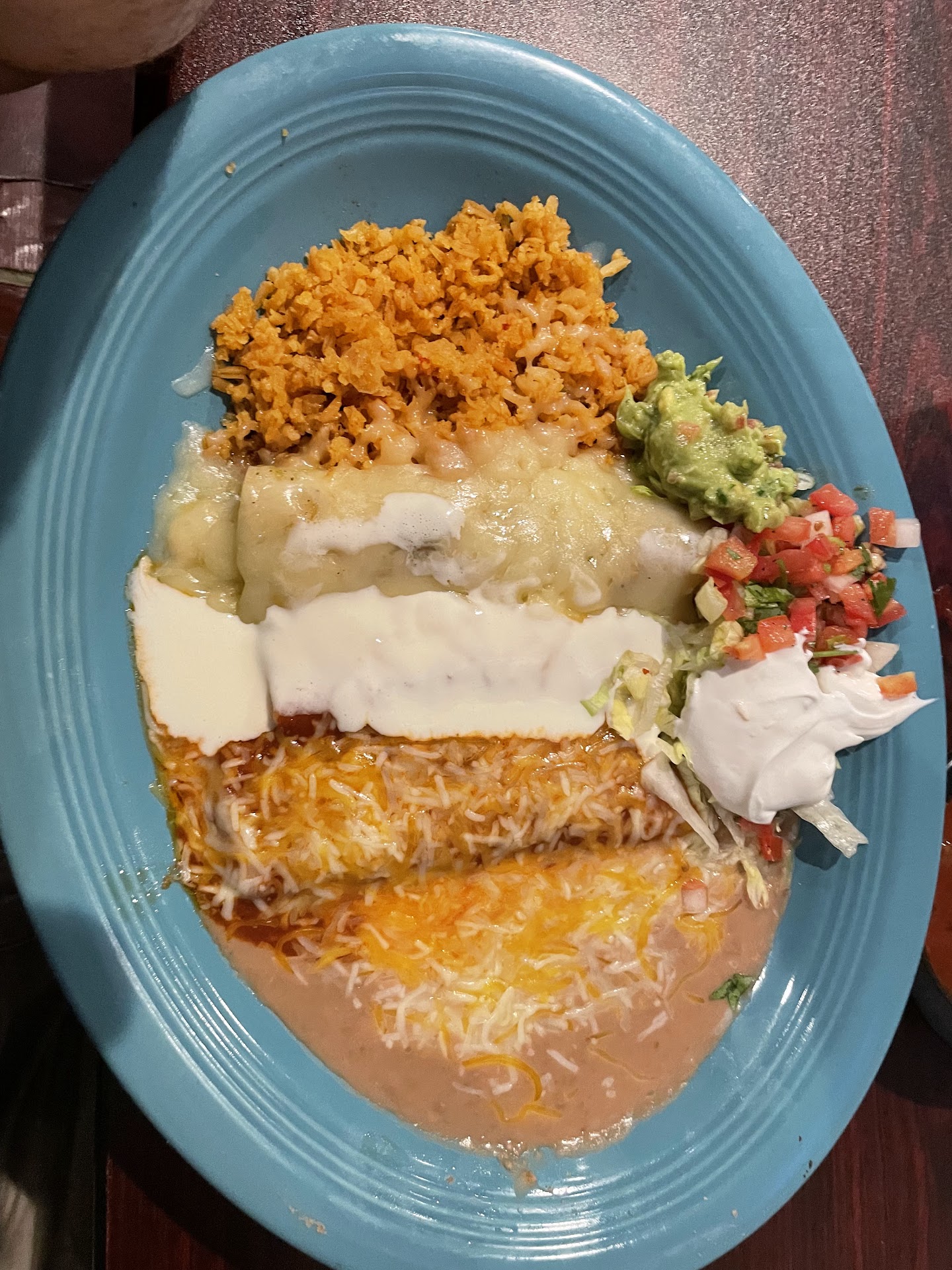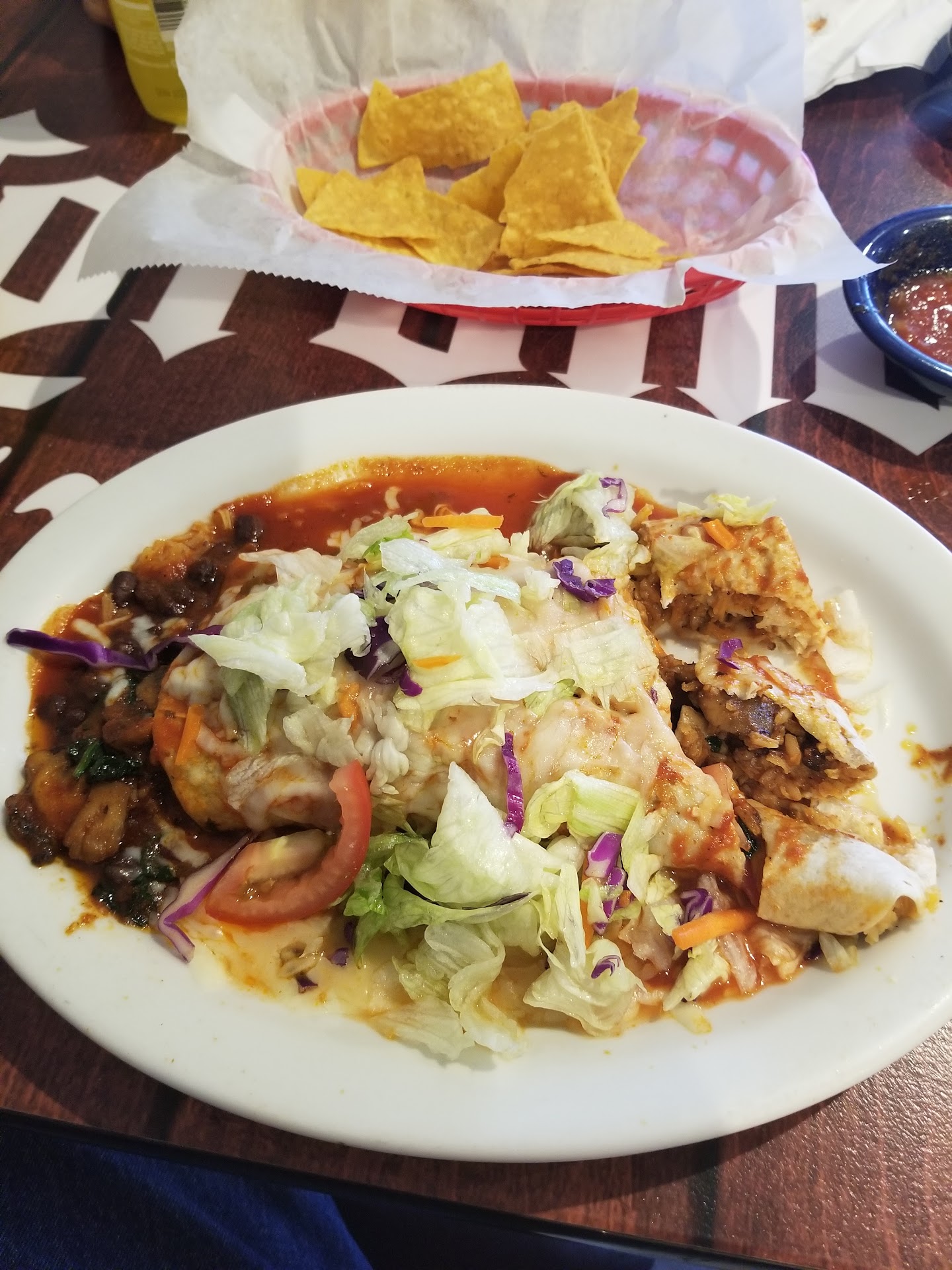 The food is good 👍! We ordered something new that we haven't had before. The chicken in their traditional red sauce was tasty. Make sure to ask for no onions or jalapeños if that's not what you like. The chips were good but their salsa tastes generic and watered down (Nietos Café has some bob chips and salsa if you want the good stuff). Their burritos are stuffed with big portions of beans, rice and your choice of meats. One reason I gave 3 stars is because the service lacked so much. With 5 waitresses and the amount of people dining, there was no reason for us to constantly try and get a waitress to tend to us, get napkins and we waited so long for our ticket. We'll probably sit at the bar next time if we want...