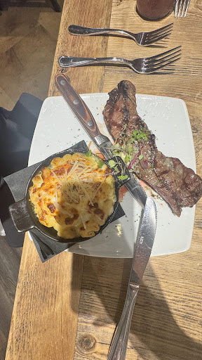 Read moreI used to own a steakhouse restaurant and I know good beef. This is Wyoming, beef country they say. Well, the two prime rib dinners we had at a premium price, were very mediocre at best. The actual quality of the beef was most likely not better that "select" grade, less than USDA Choice. I have had better rib at casino buffets. The biggest sin is that these folks don't know how to season or cook a rib roast. At this price point, I expected much better quality. Next, the baked potato. So far, not one restaurant in Wyoming has served me a decent sized (known as size 50 or 60, the number of potatoes in a box) potato. Always I get a Walmart size 90 potato. Next, for $50, I get canned corn? Nah...That's it. We ordered a crab cake appetizer for $18. That gets you two burgers of crab cakes...they were OK, but came out at the exact same time as our meal. Our wait-person asked if she wanted her to put our meals back in the warmer! Uh, no... Perhaps the absolute worse part of this entire experience was having our wait-person bring us the bill on an iPad and then stand there while I filled out her tip. Jeez...