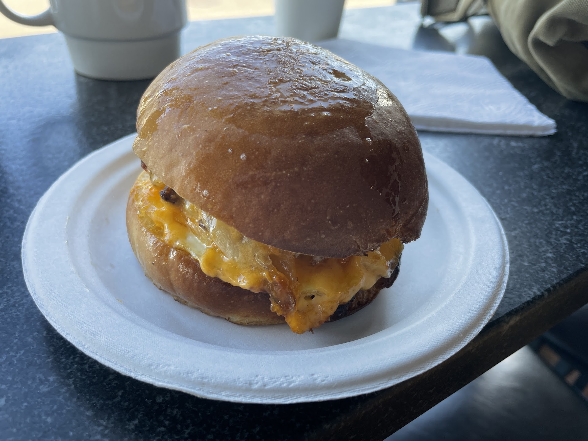 Yesterday I had the chorizo, egg, cheese, & caramelized onions on brioche. The sandwich was excellent, but I'd skip the onions next time (probably personal preference as I love chorizo and love onions, but apparently not together).