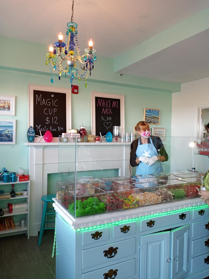 I didn't understand what the craze was all about until now! I am a huge fan of classic gummy bears, but this brings it to a whole different level. First off I love the nostalgia of a candy store by the beach. When I visited there were only older adults filling their candy bags! What a beautiful display of colorful gummy candies, some sumptuous looking handmade chocolates and fruity sodas in glass bottles. The store has a great vibe with the pastel colors. I filled a bag with a mix of various swedish gummies candies, some sweet, some salty and sweet, some with vanilla cream flavored centers, and some sour but not too sour. I can say I indulged soon as I got in my car and boy these candies were fantastic! Sitting in my car I watched a man in his 80s pull up in his mint green 1950s Chevy and come out eating from his bag! It's awesome to see this candy has caught on with all ages. I now get what the craze is all about. Fantastic little shop at my favorite beach ā¤ļø the prices are not cheap, but I think it's worth...