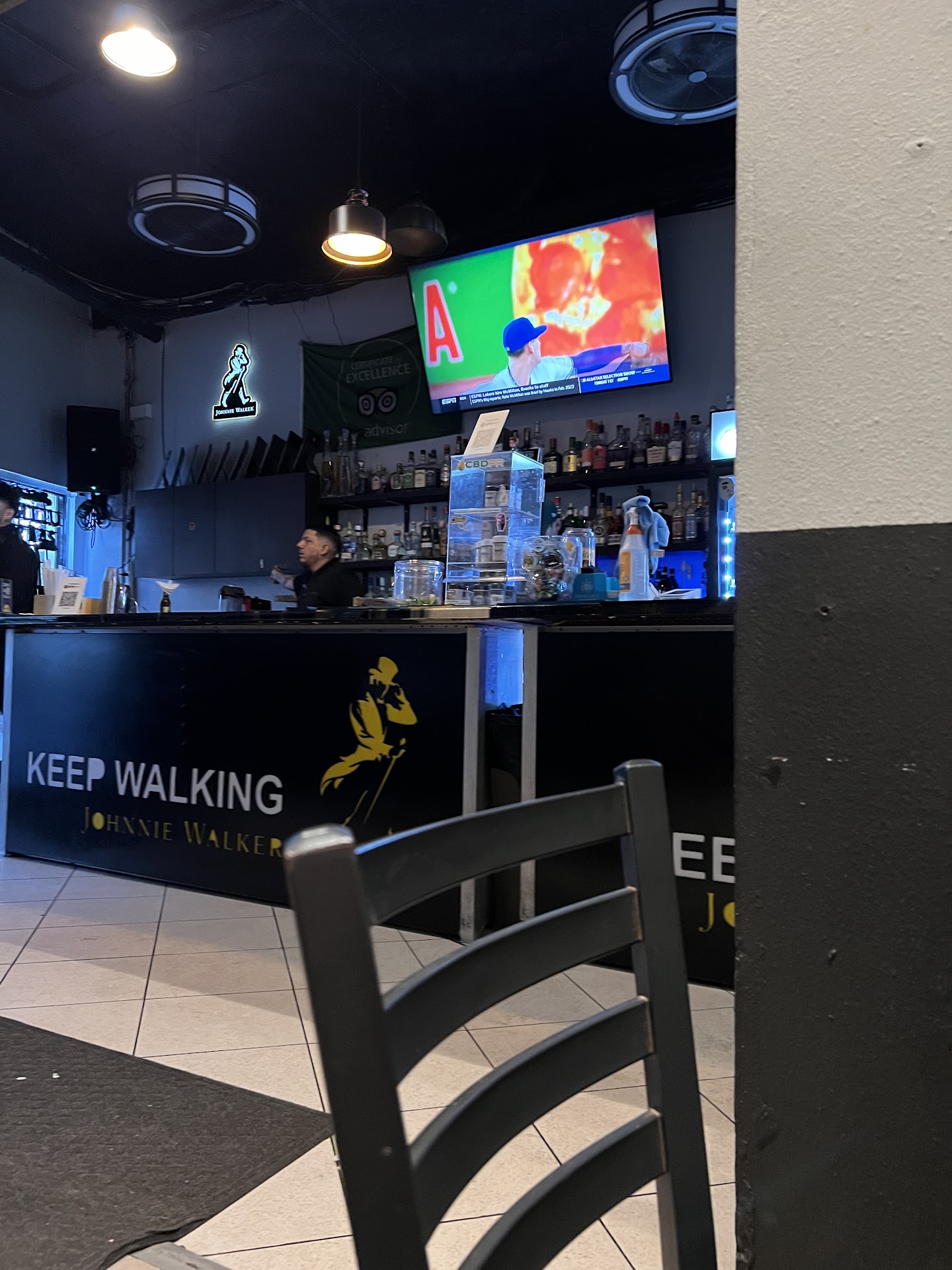 Read moreWalked in with a family of 5 and decided to sit indoors since Beryl was making the weather so humid. AC was blasting and cool! I would sit outside next time as there is a nice courtyard with fountain. Inside is more like the bar area for adults. Service by a young lady “L” with braces was excellent. She was friendly and so helpful. Food was on-point. Kids had the grilled chicken with garlic butter sauce and a side of white rice and beans. We tried the pasta carbonara and one of the sandwiches this time. Update: went back for dinner. Service is consistently excellent and friendly. Get the tostones- we had them with chicken. Plantain was crunchy, chicken breast was juicy and served with a refreshing pico salad. The grilled salmon was one of the best meals I’ve had. Grilled to perfection, not overcooked, with a nice caramelized side. I ordered the rice special that was buttery and flavorful. Chefs are so excellent and other staff make sure to come by the table with friendly greetings and ask if we are enjoying food- just...
