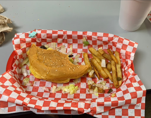 The dinning space is small and we hopped tables as patrons left until we found one table that fit our needs. (away from the door and the over-head TV set.) The burgers were brought out shortly afterward and we dug in.