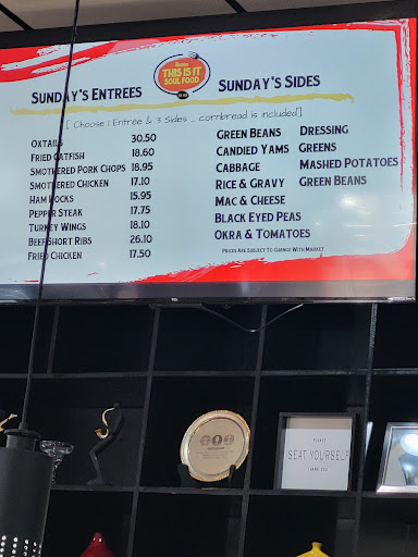 The attention to detail and commitment to quality were evident throughout my visit. The presentation of each dish was impeccable, and the portion sizes were generous. The menu at "This Is It" showcases a wide range of soul food classics, ensuring that every guest can find their preferred comfort food and satisfy their cravings.