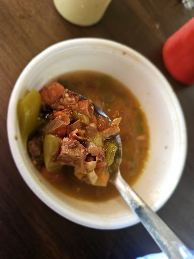 Now that leaves only the soup to mention, and l tell you this, I for one can't wait until the winter comes because I will come here to order solely this soup. I was so into chewing the first bite of my machicado taco and saving all the flavors that I didn't catch what Leo's pitch and description of this soup were. I saw a small bowl, he placed it down, I heard something about meat, and saw sneering that at first looked like frijoles a la charra. My brain said, "wait, meat... " I grab my spoon and stirred it and saw meat instead of beans. This soup (i will update this review when I get the get the name) could be the one thing that propels this mom-and-pop style taco stand to a state or even national sensation. I admit I was looking for a decent breakfast and was blindsided by this whole experience, in a very good way. I am planning on visiting the next day or so to order my fajita taco properly (my mistake, not theirs) and have a pleasant visit with the friendly...
