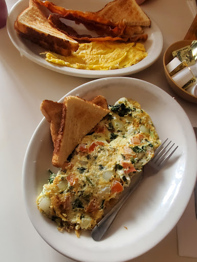 I don't understand all the positive reviews. This was the worst breakfast I have ever paid for. Western omelette with home fries. The omelette was eggs with a few stirred-in bits of ham and vegetables--certainly not the "loaded" that the menu claims. No spices at all, so bland and tasteless. The home fries were a mystery. Small uniform chunks of potato that had been browned on one side only, and then managed to be watery as well. Completely tasteless. I suspect they were canned. Again, no spices. I had two servers, an older woman and a younger woman. The older woman was very nice. The younger woman clearly didn't want to be there and was annoyed at having to serve me. If you're 70 years old and want a place to sit and drink coffee for hours in the morning (as most of the patrons appeared to be), maybe this is a good place to go. If you want food, go...