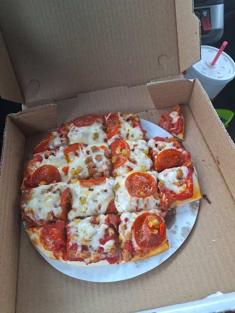 Read moreI'm a truck driver and I have Drove past this place several times and always wondered what the pizza was like. So I stopped in and got some and the people in there were friendly But my pizza was very salty. I don't understand why there is salt on the bottom of my crust. Every time I took a bite It made me feel very dehydrated. And I had to scrape the salt off. Just to be able to eat it. I've never seen salt on the bottom of a pizza like this before The pizza would be good without the salt It's just a average pizza in my opinion. I like that. But the only reason why I'm leaving a 2 out of 5 is because I pizza was so salty. I almost couldn't finish it. But the guy and Woman inside were very friendly And it's also kind of dark in there it could...