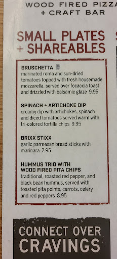Ā Ā Ā Read moreCame in tonight my daughter really wanted pizza so i figured hmm mamas noo, vinyl pi nooo, maddios nooo so i though hmm i havent really ever had brixx so i figured i woud go with you guys. As i look on the online menu i see you have spinach dip with tortilla chips, mmm sounds absolutely amazing , then i order the salted caramel cookie, which also reading it was making my mouth water, lastly i got a pepp pizza. Now there are a few reasons why im rating 2 stars, 1 i get there look in my bag i see bread chips for the artichoke dip that should have had tortilla chips like on the menu, i tell the bartender hey this was supposed to be tortilla chips, didnt really seem to care which hey i probably wouldnt have either but i would have been a little more sympathetic especially since that was one of the main reasons i order the spinach dip so im upset but not enough to spend even more time removing the spinach dip off the reciept (my daughter was hungry). So i pay we leave i get home, pizza was amazing probably the only thing we actually ate. Spinach dip was mediocre, and the salted caramel cookie was soo salty we tried eating only the bottom of the cookie to just come to terms that it was no longer worth trying because all areas were extremely salty. probably will not be...