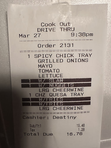 Read moreLiterally the WORST experience I have ever had at a fast food restaurant. I have visited this cookout countless times and have often encounters problems, but the last occasion takes the cake. I arrived at 1:15 which is 45 minutes before closing. The drive thru line was moving so slowly and it took 40 minutes to reach the drive thru speaker. As I pull up, the worker tells me that they only have bbq sandwiches and that they close in 5 minutes. I did not want a bbq sandwich, so I was disappointed. I asked if they had shakes, to which they replied no. I received no sympathy at all from the workers. I did not want to cause a scene, so I just left frustrated.