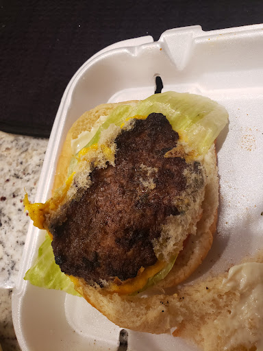 Ā Ā Ā Read moreDISAPPOINTED! Stopped here for a quick bite! The sign was off so thought it was closed at first but thought it's 6:45pm so how are they closed. Turns out the drive-thru open late sign was lit on the backside of the building. Got in the drive thru line (only one car in front of us) took them longer than it should have to order. Our turn to order and the system sounded bad at first. Couldn't understand what the window worker was saying. After letting her know, she came through clearer so it was probably user error. Notified the young lady at the window about the sign & someone turned it on. She was polite. We received our food, the fries were cold & needed some salt (there was none). My small burger was a joke! When I picked it up, I literally thought someone forgot to put the patty on my bun. Oh no, it was there but looked more like a piece of a patty (see pic)!š” It was half the size of my palm. For two meals at $16 this should have been better. I ate it b/c it was literally the only meal I had after a busy day. Burger & hushpuppies were cold too. I mean there was only one car in line besides us! My husband's meal was the same. He ordered a double burger & the patty's were so little it looked like one (the way mine should have looked). Take the few extra minutes to drop some hot fries, cook a decent patty, and make sure things are right. I'd give 1-star but I'm just not a mean person. I should have gone to Wendy's....