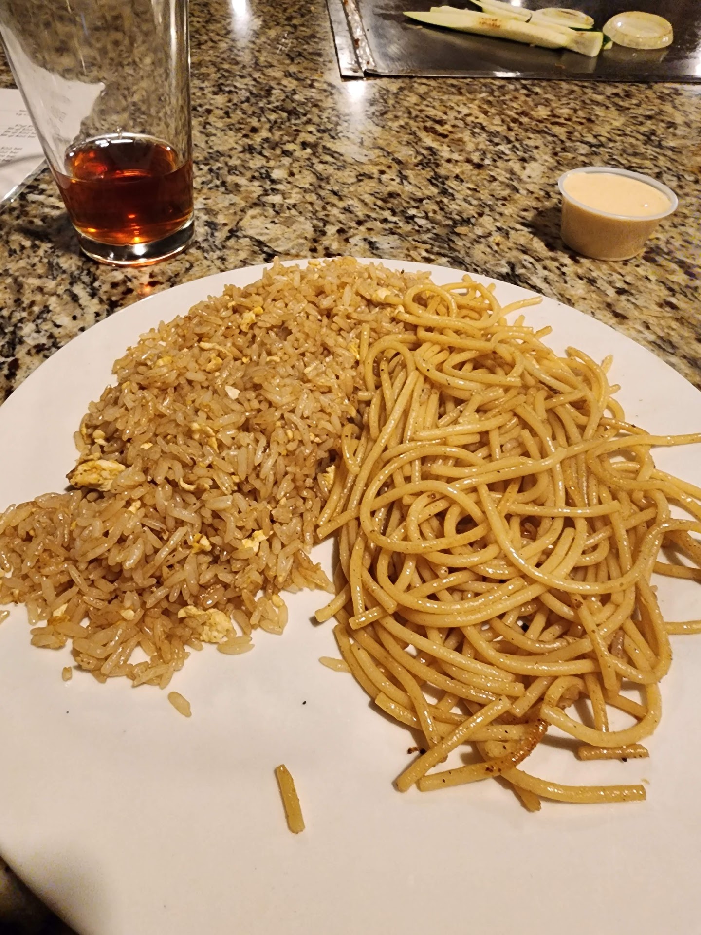2.) The Chef: While IMHO he did a decent job with the food, he seemed a bit disorganized. It started out well, but then he got in a hurry and undercooked the veggies, while overcooking the proteins. My steak was overdone and some of the mushrooms were downright burnt. Its like he was told to cook the meal as fast as possible. He even forgot the classic "alcohol onion fire volcano" until after the meal was served and the grill was cleaned - and only after a little girl from another group asked about it. This kinda explains...