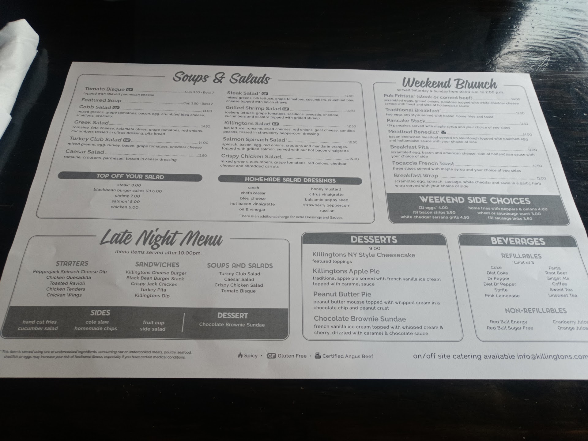 Our waiter never asked my husband if he wanted anything else to drink and took forever to bring our check. This was our first and LAST time at Killington's. Go elsewhere - there are much better places to eat in Huntersville than...