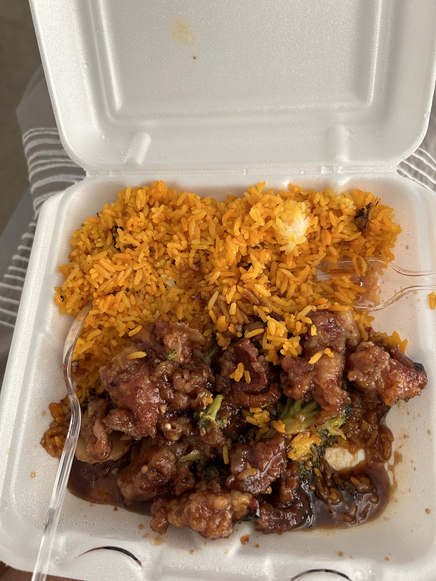 But alas, the food was average to below average, and the to-go containers are shrunken in size and the portion pockets for the entree’ are smaller with an expanded space for steamed or fried rice. I ordered steamed rice because I like it, and I have grown accustomed to fast Chinese places not providing real fried rice anymore, so I can’t speak to any failures there. As for the entree, nothing good enough to call me back to give this place another try. I would rather never go back inside. Oh, and to add insult to injury, I just bit into a very stale fortune cookie. (How is that possible, I do not know, so I updated my stars for this review from 4...