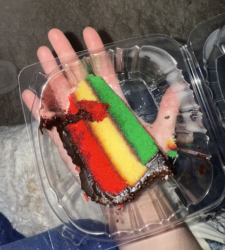 Today, I paid $5.25 (+tax) for a slice of Rainbow Cake in addition to our to-go pizza.