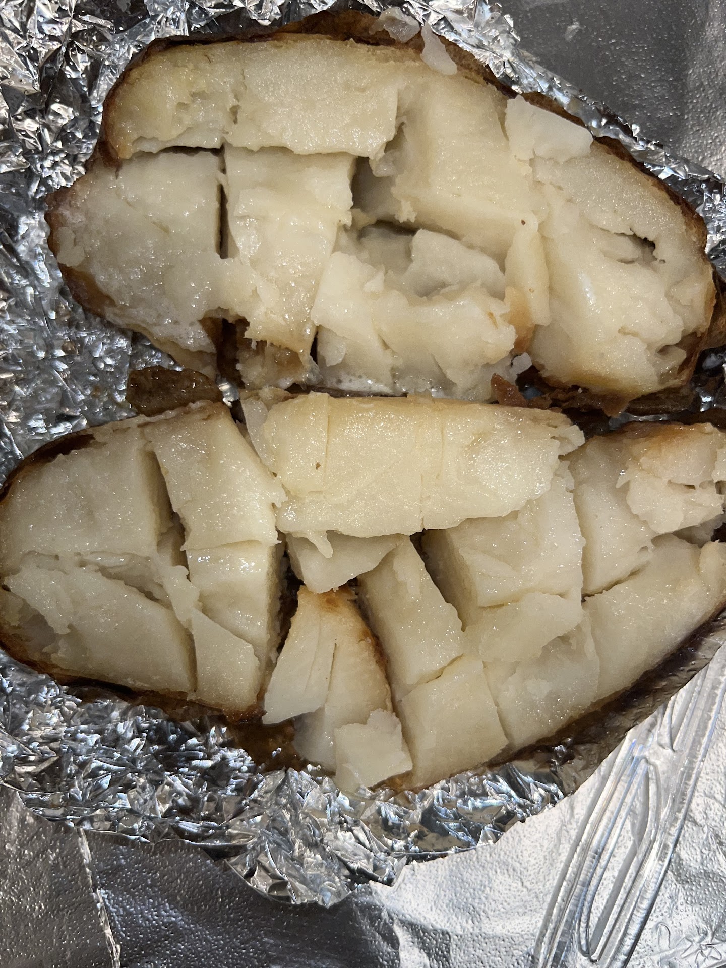 Both baked potatoes that came with both meals were an awful texture and inedible. That night I ended up with an awful rash on my face. It was a breakout from the food I had eaten and that was my first meal of the day. In addition, I couldn’t even get out of bed the next day because I was literally sick to the stomach. $40.03 down the drain. I will not return. The food sucked.