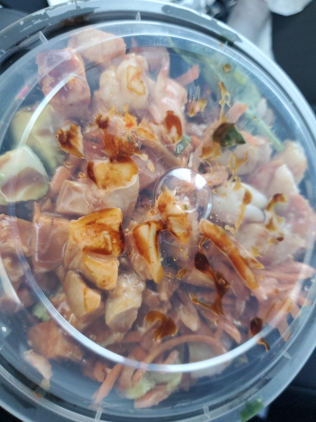 So yeah, we ate it, but we definitely weren’t happy with it. It didn’t feel like we were eating a poke bowl—it was more like a bowl of soup with toppings. Pretty...