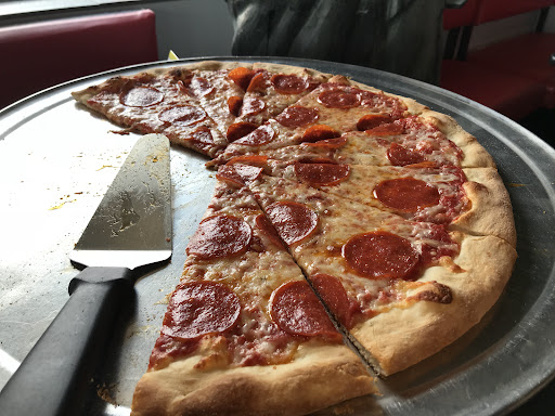 The building is somewhat unassuming, but the pizza was impressively good. I got a pepperoni pizza on a Friday night. A well mannered young woman took my order. The pizza was ready faster than I could make a run across the road to ABC liquor and back. I got a pleasant surprise with a free cannoli! Walking out the door I could smell the delicous spice of the pepperoni even with the pizza still in the box! The first slice pulled away with easy a foot long trail of mozzarella that GENEROUSLY topped the pizza. If you like cheese, you'd probably be a fan of Rocky's. Eating this pizza is a unique experience as the first few bites are like eating mouthfuls of cheese. I appreciate that they didn't use Too many pepperonis, each one was like an explosion of spicy meatiness. As you eat your way through the slice you're introduced to a subtle sweet sauce that seems to increase in quantity as you make your way to the crust. The crust, unassuming at first and relatively thin, but as you make your way back you get more of an introduction to a very classic pizza dough taste. Then some of the spice in the sauce starts to kick in just before eating the final bites of crust at the end. I appreciate that the crust had minimal burning so that you're not left with that burnt carbon taste at the end as I was also happy to see the toppings most of the way to the edge. I don't think anyone wants to order a 12" pizza, but only get 10" of toppings.