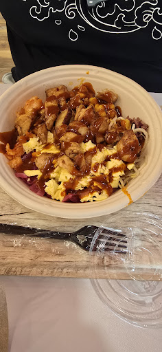 They were quite skimpy with the toppings. I asked for broccoli and was given 2 pieces. I asked for extra broccoli and they put another 2 small pieces on. The same for the kimchi, pickled onion, carrots, potatoes, cucumbers.. a tiny amount. Like 4 potato cubes and 4 pieces of pickled onion.. Even for the base - not a lot of noodles or rice. The Korean chicken meat option was $5 dollars extra, which I knew, but I was only given 3 half sized tenders! They're a bit on the smaller side already, so $1.50+ per half tender is a pretty bad deal. The measuring scoop for steak was only filled up about 2/3rds of the way too.