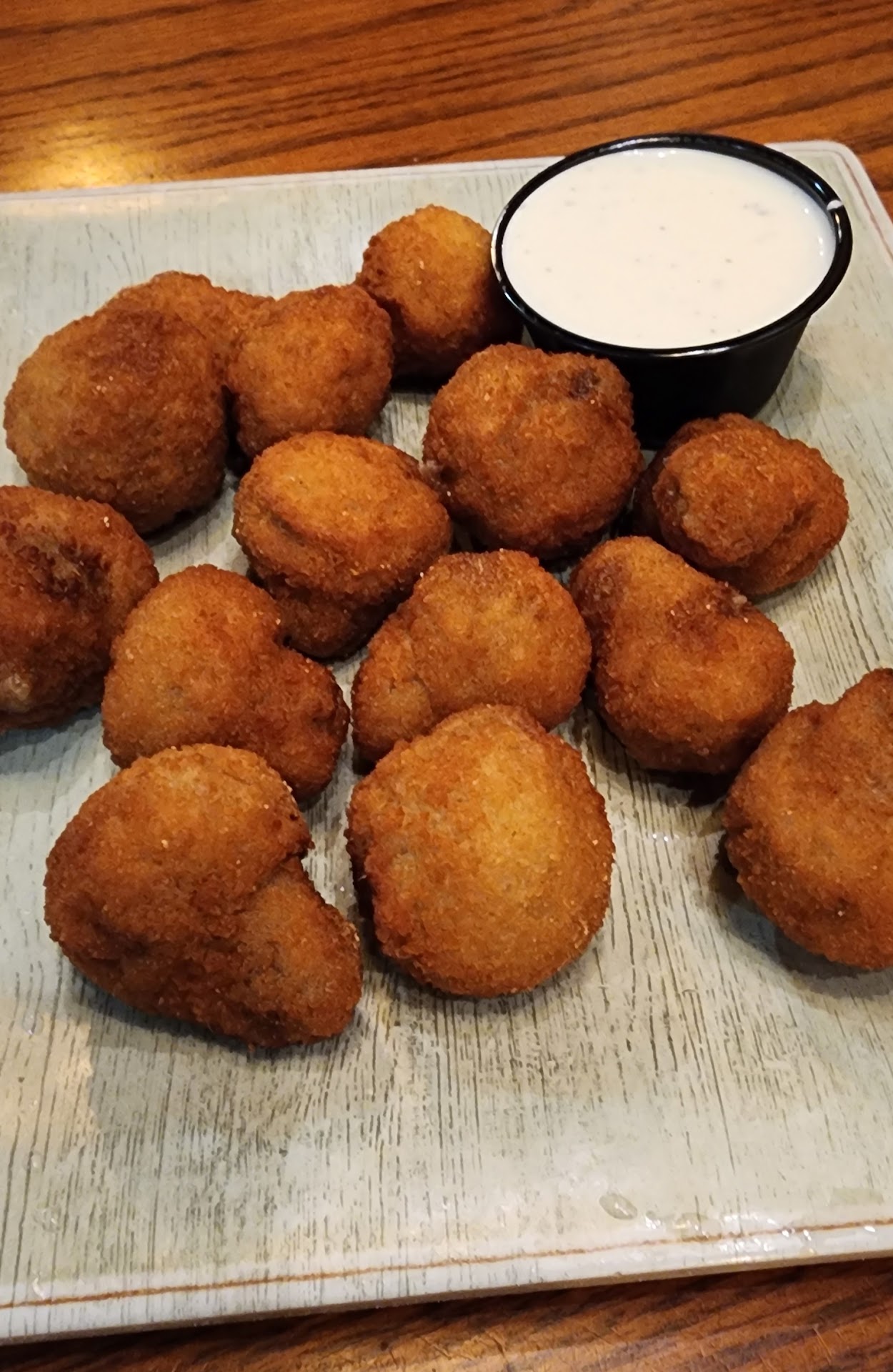 Please note...when there is a show at the Dixie Theater, the menu at Mallards is a limited item special event menu. So we were a little disappointed as this was our very first visit to this restaurant and di not know this. That being said, it was very tasty food. We got the fried mushrooms for an appi. They were good. Not fabulous, but tasty. My daughter and I ordered the salmon dinner with baked potato. It really was delish. It had some over cooked veggies of broccoli and carrots and squash on the side. The chicken tender dinner for my grandson had wonderful battered chicken tenders and they were very nice. My granddaughter got the skewer if shrimp. The fries are ok. Shrimp was very tasty but a tad over cooked. We got 2 orders to go. They forgot to add the side salads so we had to wait for those. Over all they were very busy and so I felt service was a tad slow. Bit we will try to go back and see their full menu. I would recommend trying this quaint...