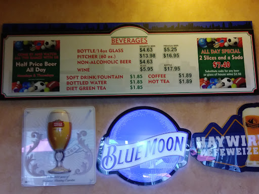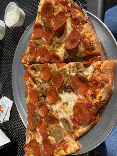 Read moreWhen I'm anywhere near Algonquin and I am craving a slice of pizza I go to a slice of New York. The pizza is pretty thin crust so you can really taste what's on top. They use a cheese blend I think because it doesn't just taste or feel like mozzarella and it's really good. And they have lots of different types of pizzas that are ready made and they're all good. Last time I got the buffalo chicken pizza and the meatball sausage pepperoni pizza, and are ready made and they go into a hot oven so they come out pretty quick. They have beers on tap and they have bottles to. I haven't tried anyting but the pizza here, but I would like to because this pizza has nice quality ingredients. The atmosphere of the place is like a sports theme with lots of TVs and it looks nice, and it's always clean. And they...