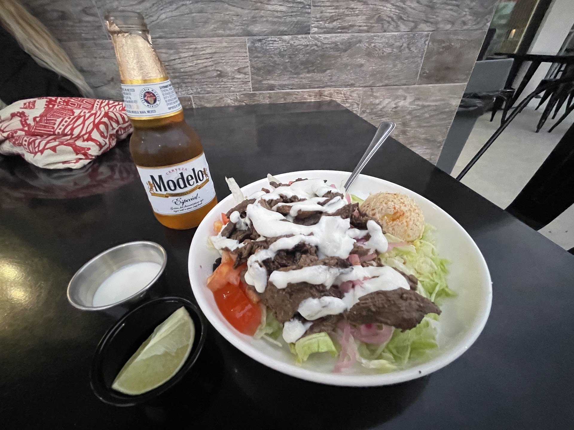 I had the steak wrap. The portion was not too big, more on the "reasonable" size, but very filling, especially with the help of the accompanying fries (which, incidentally, you can substitute with a salad). It came with a sort of Tahini sauce, which was a little on the bitter side. But it wasn't really needed, as the meat already had its sauce, and it was tasty, albeit milder. The steak was good, soft, and tasty but just a tad chewy (still good, though). The fries were very good: extra crispy on the outside and soft on the inside. My wife had the gyro plate. It was mixed lamb and beef, as it usually is the US, since the average American palate finds all-lamb to be too much (and if you fall in that group, don't order gyro in Greece, LOL...) Anyhow, I sampled it, and it was also good. The gyro came with a size of Tzatziki sauce (Greek yogurt, garlic, and dill weed), and it was creamy and tasty.